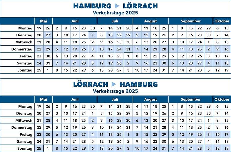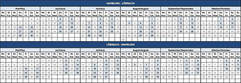 Hamburg-Altona → Lörrach | Lörrach → Hamburg-Altona |
