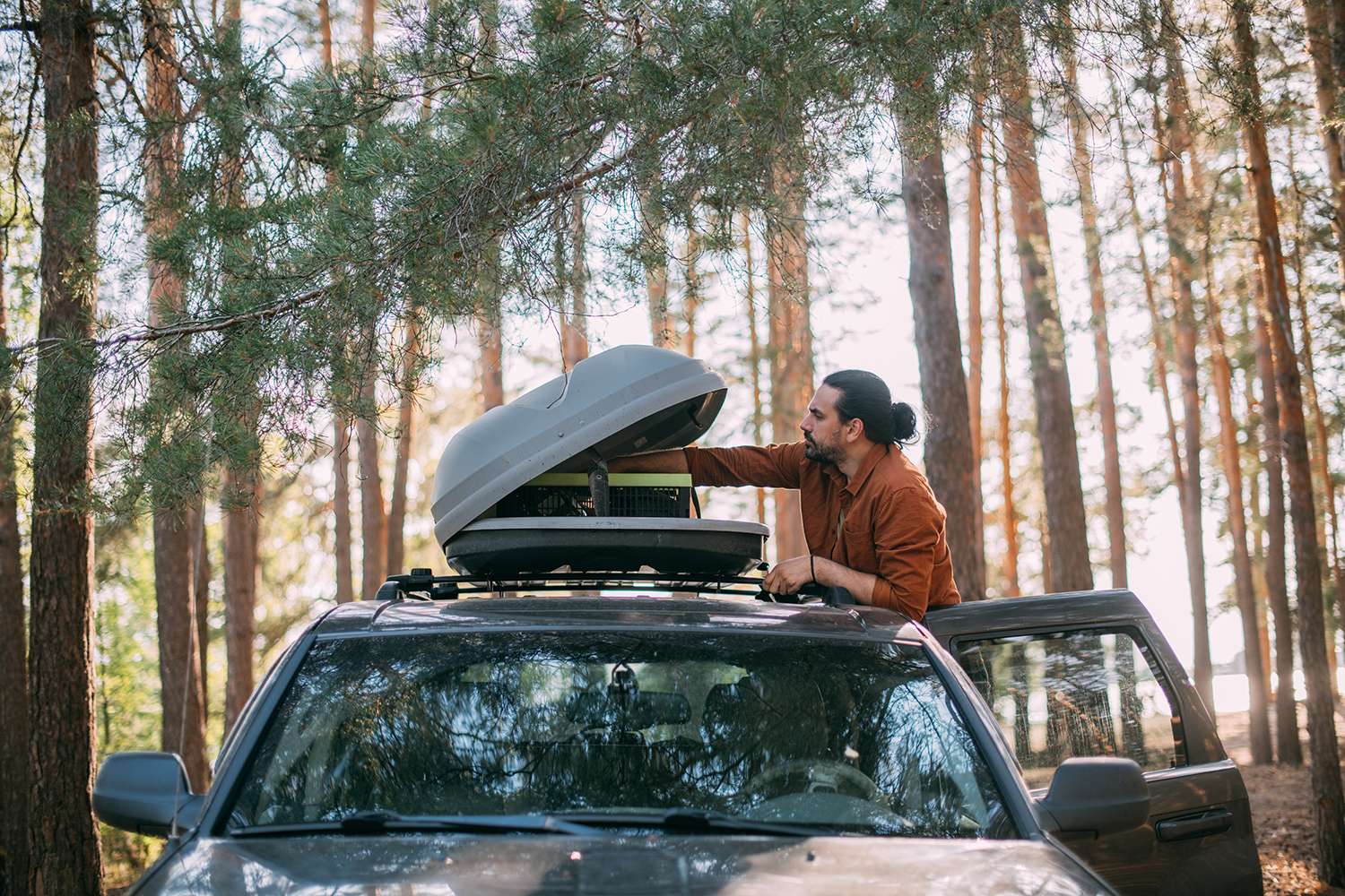 Sie können fest montierte, gesicherte und verschlossene Dachboxen und Fahrradträger an oder an Ihrem Fahrzeug sowie Motorradtaschen transportieren, wenn alle maximalen Lademaße eingehalten werden.