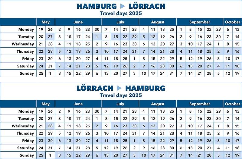 In the 2026 SEASON you can choose from 102 travel days for your planning.